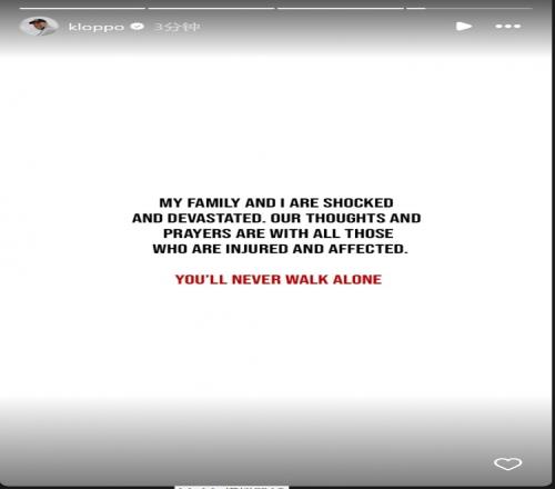 克洛普社媒:对撞人事件感到震惊和悲痛,为所有受影响的人祈祷