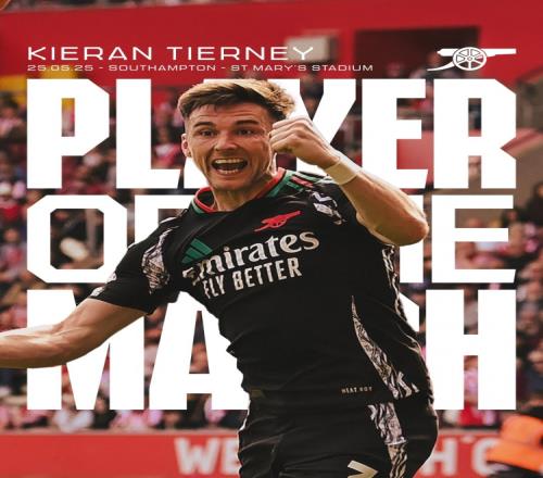 阿森纳官方写道:用进球纪念他的告别战,昨日比赛全场最佳--蒂尔尼。根据此前报道,蒂尔尼将于今夏重返凯尔特人。