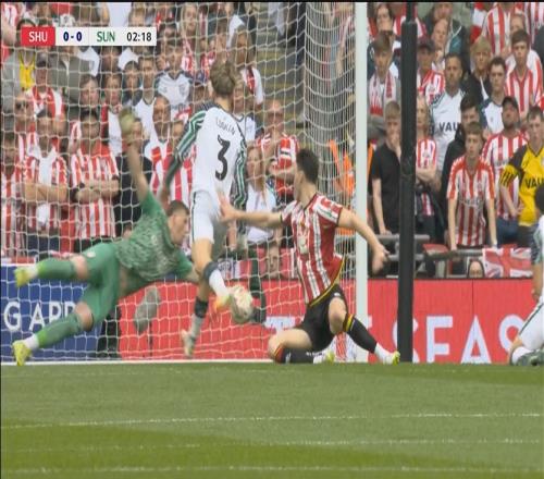 体育资讯05月24日报道宣称 2024-25赛季英冠升级附加决赛,谢菲尔德联与桑德兰争夺最后一个英超席位。比赛第1分钟,谢菲联前锋摩尔头球顶向死角,桑德兰门将帕特森极限救险。