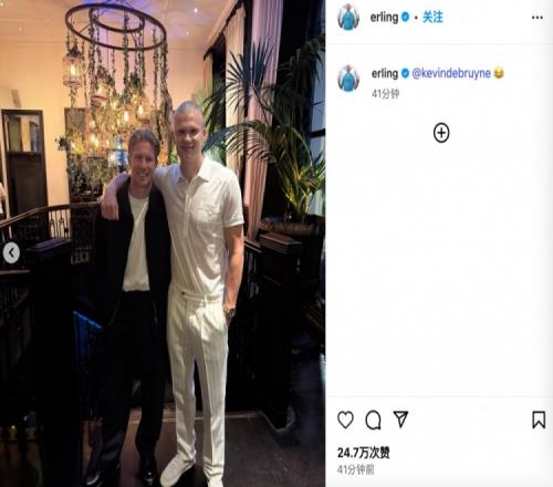 体育资讯5月23日报道宣称 当地时间本周四,曼城前锋哈兰德在个人INS上发图,晒出了与德布劳内的合影。