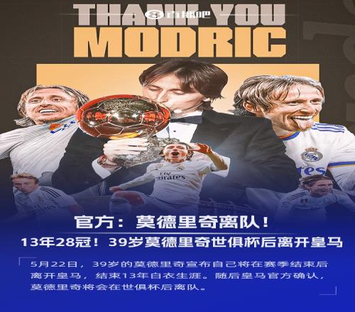 39岁的莫德里奇今日在社媒宣布自己将在赛季结束后离开皇马,结束13年白衣生涯。