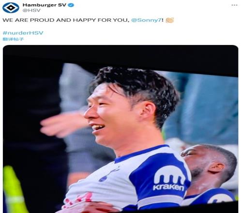 德甲升班马汉堡在赛后更新社媒,晒出孙兴慜庆祝的比赛照,并配文写道:“Sonny(孙兴慜昵称),我们为你骄傲,为你高兴!”