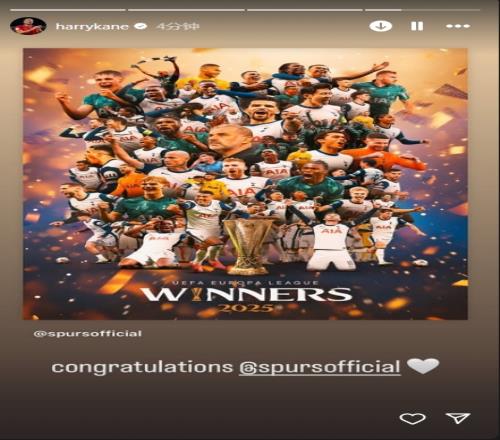 热刺前队长凯恩也发帖祝贺,他转发了热刺夺冠海报,并写到:恭喜@热刺。