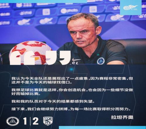 赛后新闻发布会上,主教练克里斯蒂安-拉坦齐奥表示:“我们会继续努力拼搏,为每一场比赛取得积分而努力。”