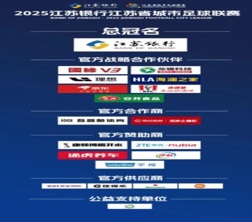 从苏超官方账号看,苏超包括1家总冠名、7家官方战略合作伙伴、2家官方合作商、5家官方赞助商以及4家官方供应商。