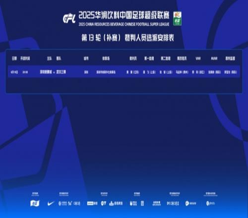 深圳新鹏城vs武汉三镇补赛裁判:黄翼主裁判,邢琦VAR