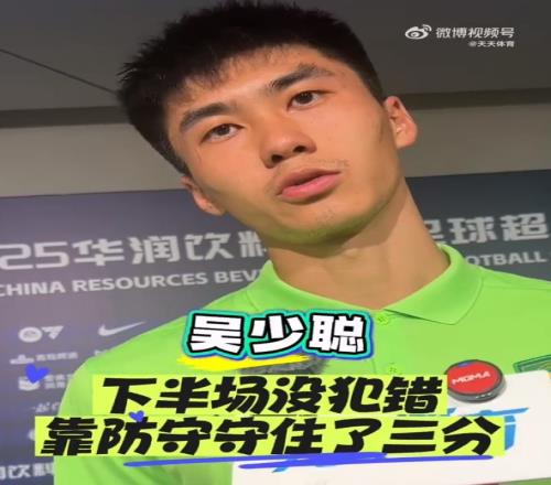 体育资讯6月18日报道宣称 中超联赛第6轮补赛,北京国安主场1-0击败青岛西海岸。赛后,在接受“天天体育”采访时,国安球员吴少聪接受了采访。