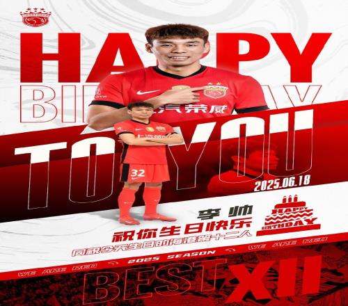 今天是海港足球俱乐部一线队球员李帅的生日,让我们祝他生日快乐!