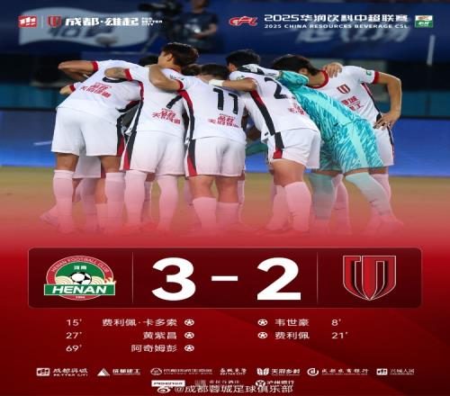 韦世豪单刀破门+助攻费利佩成都蓉城23负于河南俱乐部酒祖杜康