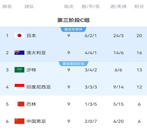 在最后一轮赛前,国足2胜7负积6分,净胜球-14,在小组中排名垫底;巴林则是1胜3平5负,净胜球-10,排名小组第5。