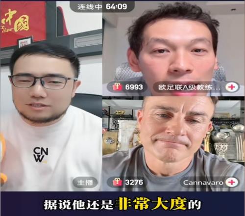 体育资讯06月08日报道宣称 卡纳瓦罗近日在快手平台直播,媒体人潘伟力询问了他有关广州队无法准入的话题,以及卡纳瓦罗放弃部分欠薪的传闻。
