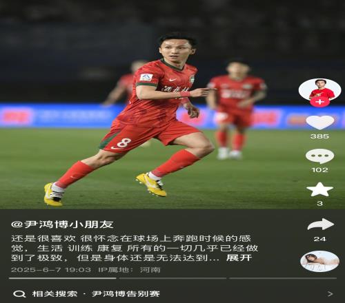 体育资讯06月07日报道宣称 35岁的河南队中场尹鸿博在社交媒体上发文,暗示自己在受伤病困扰的情况下,可能已经到了退役了时候。
