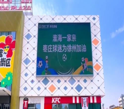 值得一提的是,山东省枣庄市一家商场的大屏幕出现为徐州队加油的标语,内容为“淮海一家亲,枣庄球迷为徐州加油。”