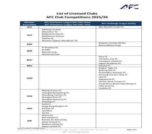 山东泰山、浙江未能达到亚足联赛事的竞技成绩要求,不能参加25-26赛季亚足联相关赛事,但他们获得的准入牌照将允许他们在遇到季前突发情况有球队缺席时,拥有优先递补参赛的权利。