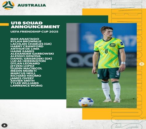 在澳大利亚U18队公布的最新一期名单中,黄振文在列。澳大利亚队将于5月30日-6月11日在瑞士尼翁参加欧足联友谊杯,小组赛对手为阿根廷、法国和美国。