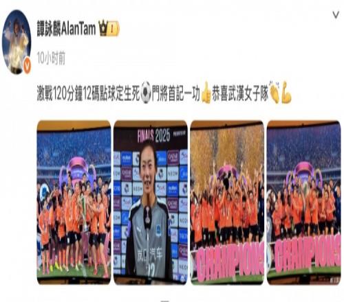 谭咏麟祝贺武汉女足:激战120分钟,点球定生死,门将首记一功