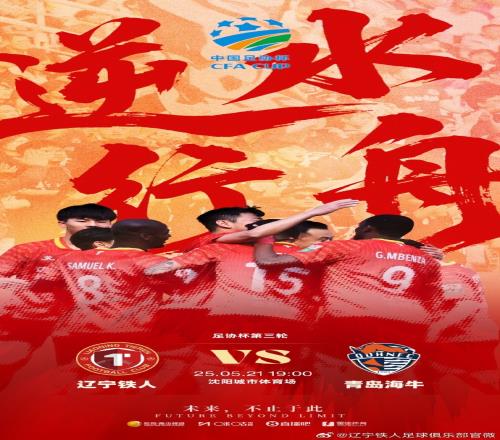 2025年5月21日19:00,足协杯第三轮,辽宁铁人农商银行队将在沈阳城市体育场迎战青岛海牛队。