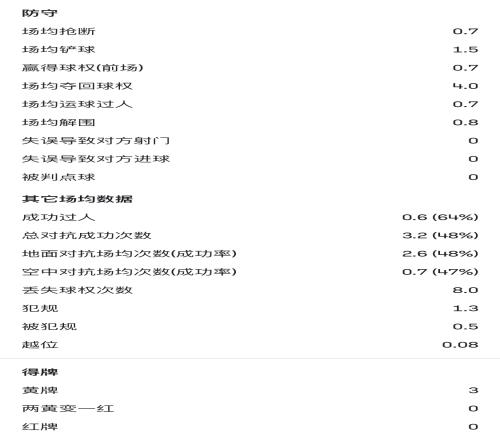 杨明洋本赛季代表成都蓉城在中超出场12次,跑动覆盖范围广,进攻方面能带来准确传球。防守方面,场均抢断0.7次、夺回球权4.0次,解围0.8次。