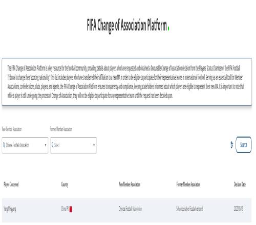 体育资讯05月20日报道宣称 国际足联协会变更平台官网显示,成都蓉城中场杨明洋的会籍由瑞士足协变更成中国足协。