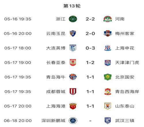 注:深圳新鹏城vs武汉三镇因场地原因延期