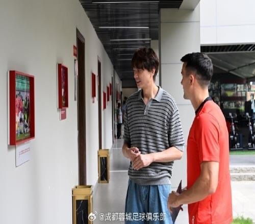 今天,苏见信来到俱乐部基地探营,队长周定洋带他参观了基地,在漫步中两人分享了对足球、音乐的热爱,还在球场玩起了射门小游戏。作为成都蓉城的好朋友,苏见信也收获了成都蓉城队的签名球衣,与队员们一同合影,记录下这难忘的瞬间。