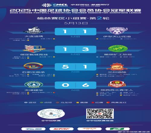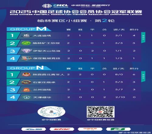 2025中冠联赛榆林赛区小组赛第2轮积分榜
