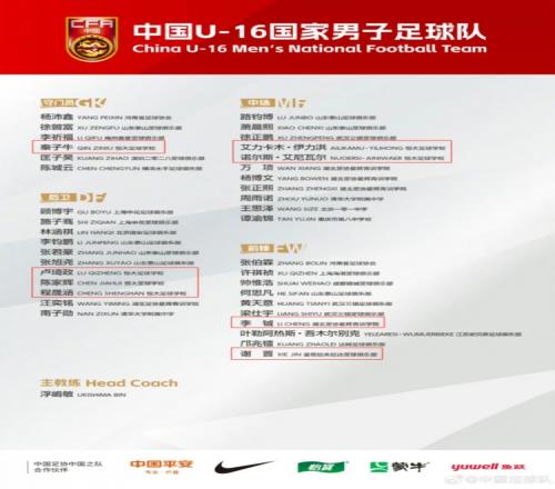 5月13日,中国足协公布U16国家男子足球队2025年第二期集训名单,卢琦政、秦子牛、艾力卡木-伊力洪、诺尔斯-艾尼瓦尔、程晟涵、陈家辉、李铖、谢晋等8名恒足少年入选,居各青训单位输送人数之最。