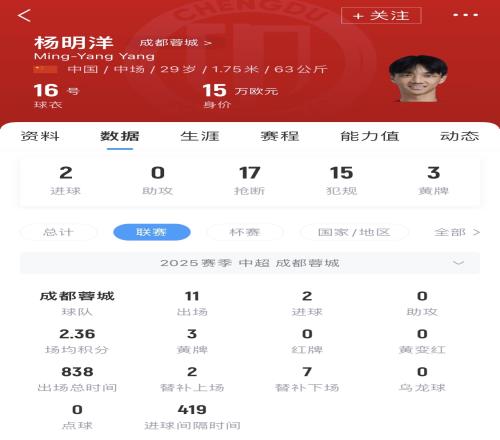 体育资讯05月12日报道宣称 成都蓉城中场杨明洋连续两轮联赛进球,据北青体育肖赧报道,他表现引起国足关注。