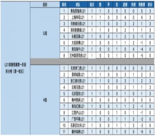 【相关】U21联赛预赛首轮综述:津门虎9-0赣州瑞狮 西海岸5-0兰州陇原竞技