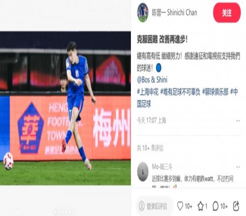 体育资讯5月8日报道宣称 申花球员陈晋一更新社媒,总结球队近期表现。