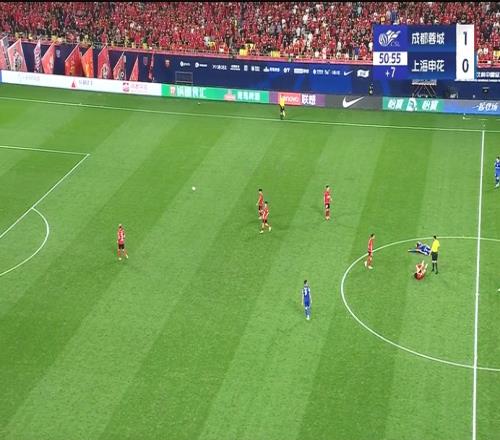 申花反击机会,米内罗面对多人防守强突,元敏诚战术犯规吃到黄牌