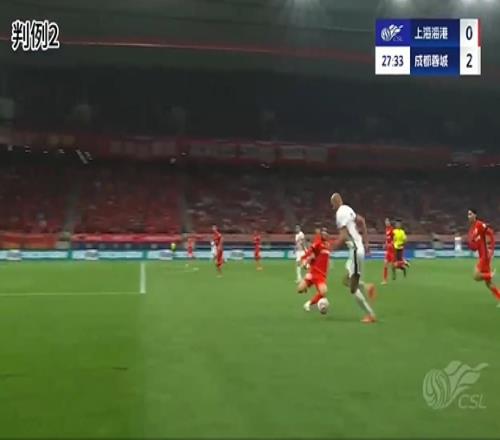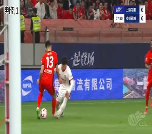 判例二:中超联赛第8轮,上海海港VS成都蓉城,比赛第28分钟,上海海港40号队员倒地铲抢接触到成都蓉城9号队员,裁判员判罚上海海港40号犯规,并出示黄牌。VAR未介入。