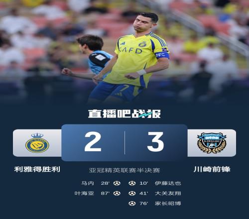 体育资讯05月01日报道宣称 亚冠半决赛川崎前锋3-2击败利雅得胜利,闯入亚冠决赛将战西区第2吉达国民。