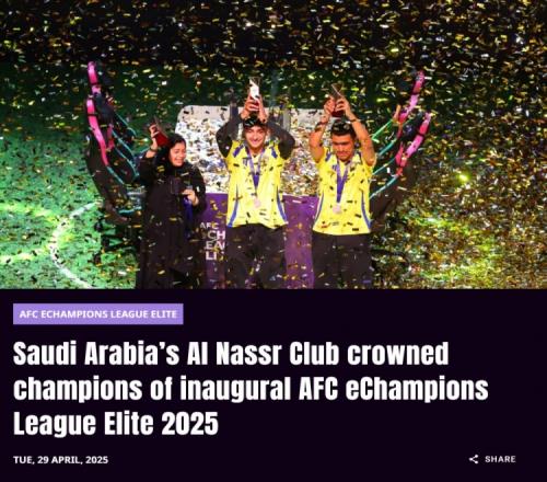 利雅得胜利夺得2025年亚足联电竞精英联赛冠军