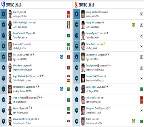 首发外援9-8,外援身价1.256亿欧-450万欧