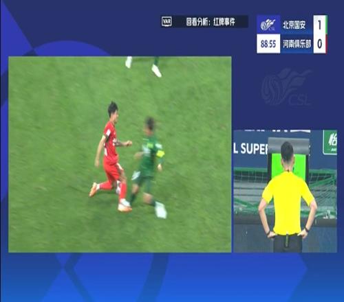 中超第9轮,国安主场对阵河南队,比赛最后时刻,张稀哲踩踏犯规,主裁判在查看回放后向张稀哲出示红牌将其罚下。