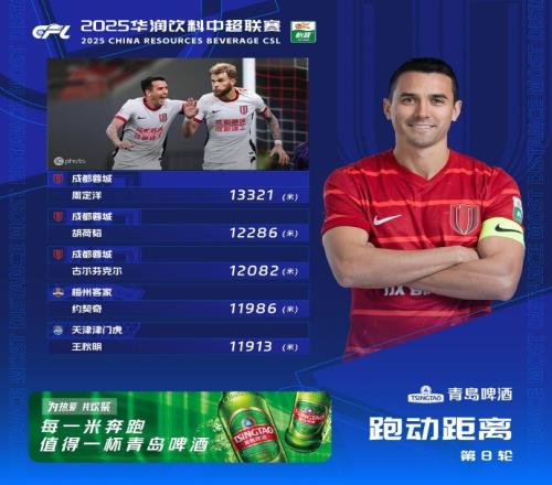 另外,蓉城球员胡荷韬和古尔芬克尔分列本轮跑动榜第二和第三位。