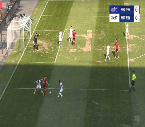 第24分钟,贝里奇前场左侧得球,一过二晃开两人突入禁区小角度打门被扑,亚泰0-0玉昆。