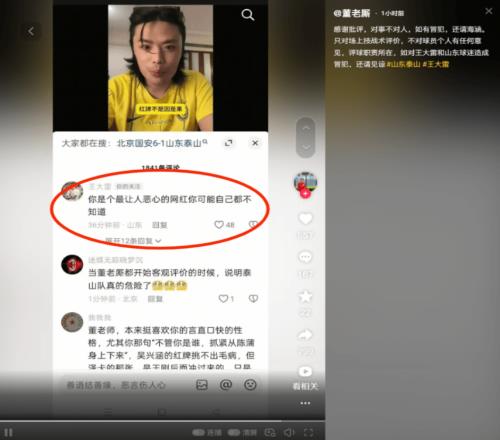 博主董老厮分析泰山16惨败遭王大雷怒怼:你是最恶心的网红