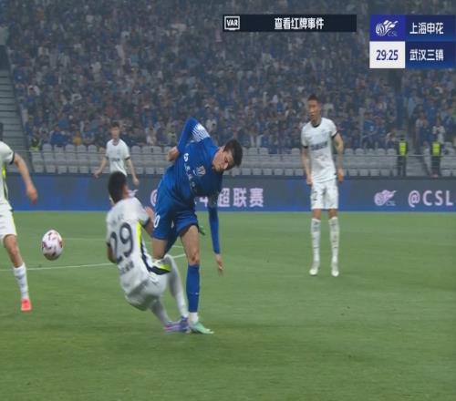 体育资讯04月19日报道宣称 申花vs三镇第30分钟,特谢拉与郑浩乾拼抢中犯规,吃到黄牌。VAR随后介入查看红牌事件,但最终维持原判。