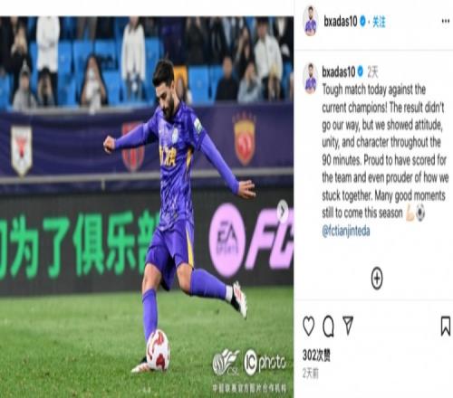 哈达斯社媒谈津门虎14海港:结果不理想,但球队紧紧团结在一起
