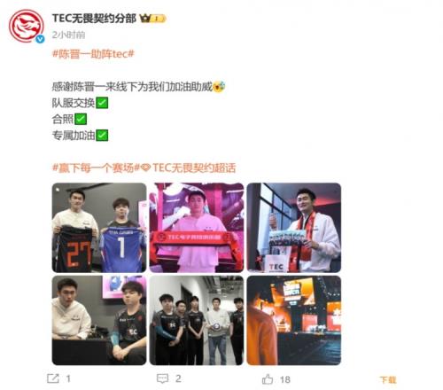 TEC无畏契约分部发文欢迎陈晋一,配文道: