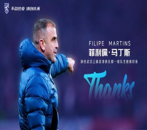 经俱乐部与菲利佩·马丁斯友好协商并达成一致,马丁斯先生将不再担任武汉三镇足球俱乐部一线队主教练,一线队助理教练邓卓翔指导将暂时负责球队的训练及比赛工作。
