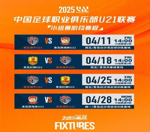 U21联赛:青岛海牛U21梯队将与青岛西海岸U21梯队进行首场比赛