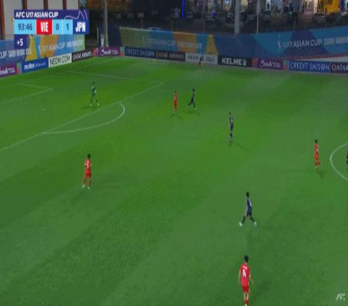 U17亚洲杯,越南首战战平澳大利亚后,次轮1-1绝平日本。第95分钟门将开大脚找前锋,越南球员造点后在禁区不断翻滚。