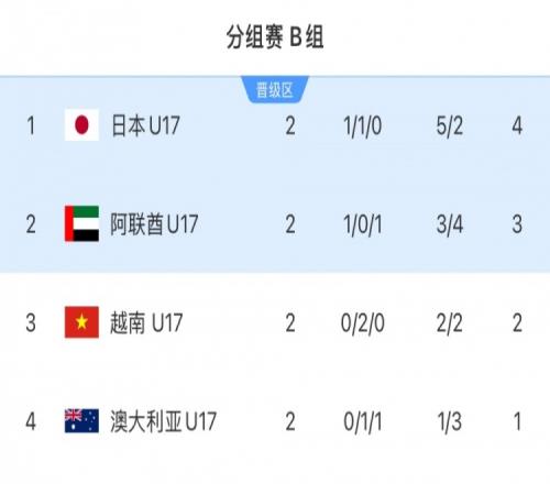 赢球就进U17世界杯!越南U17连平袋鼠日本,末轮胜阿联酋必晋级