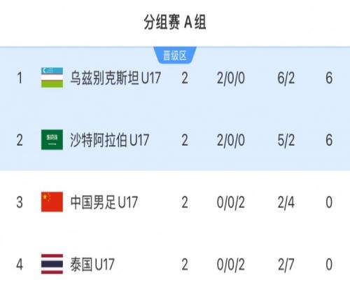 乌兹别克U17和沙特U17提前晋级并获得世少赛资格,末轮争小组第一
