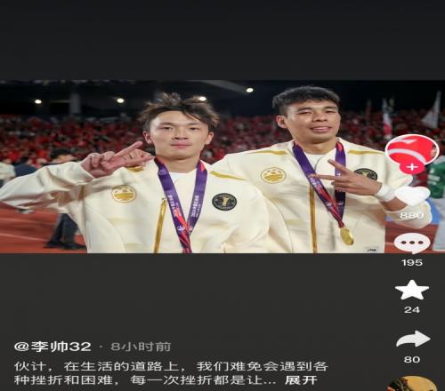 体育资讯4月5日报道宣称 4月2日进行的中超联赛第4轮,上海海港主场对阵梅州客家的比赛中,王振澳因拼抢导致其右膝十字韧带严重撕裂。对于王振澳的伤势,他的海港队友李帅通过社媒送上了祝福。
