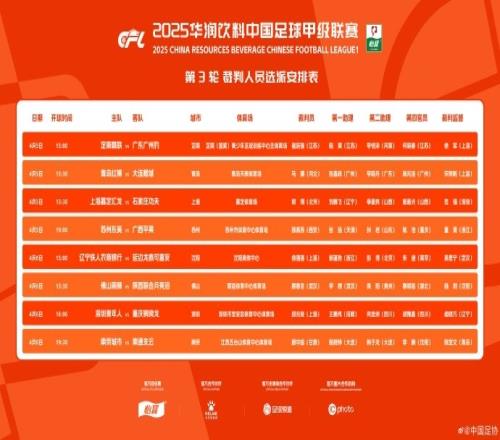 中超第5轮裁判安排:高鹏执法亚泰vs泰山,李海新执法国安vs浙江