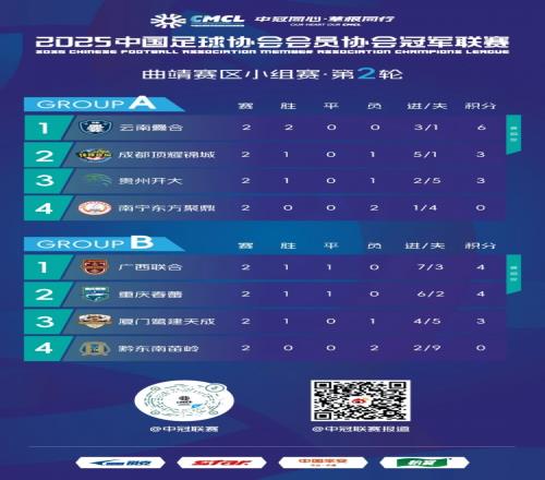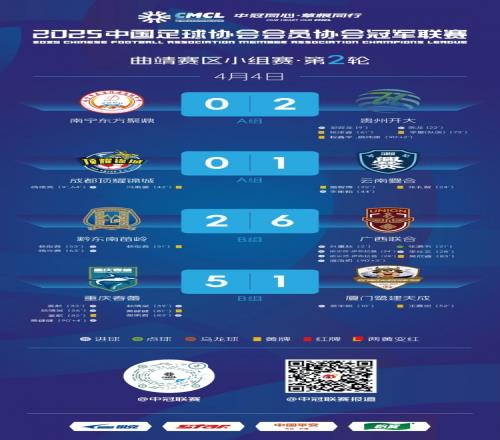 体育资讯4月5日报道宣称 据中冠联赛官方报道,昨天进行了曲靖赛区小组赛第二轮比赛,具体各场如下: